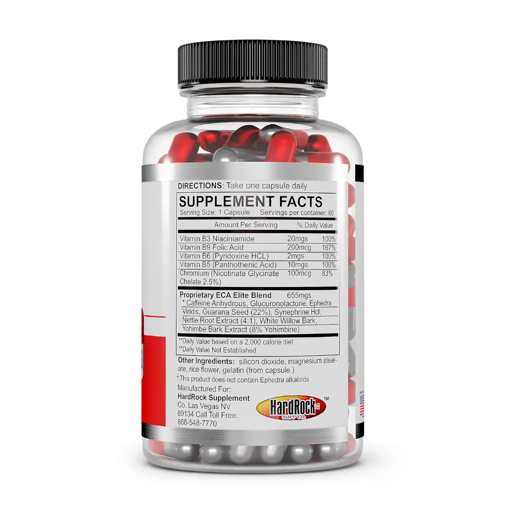Hard Rock Supplements ECA Elite will burn fat, improve focus and energy, and bring your appetite under control – lighting fast! A fast acting thermogenic, ECA Elite is one of the most potent diet aids you can buy!